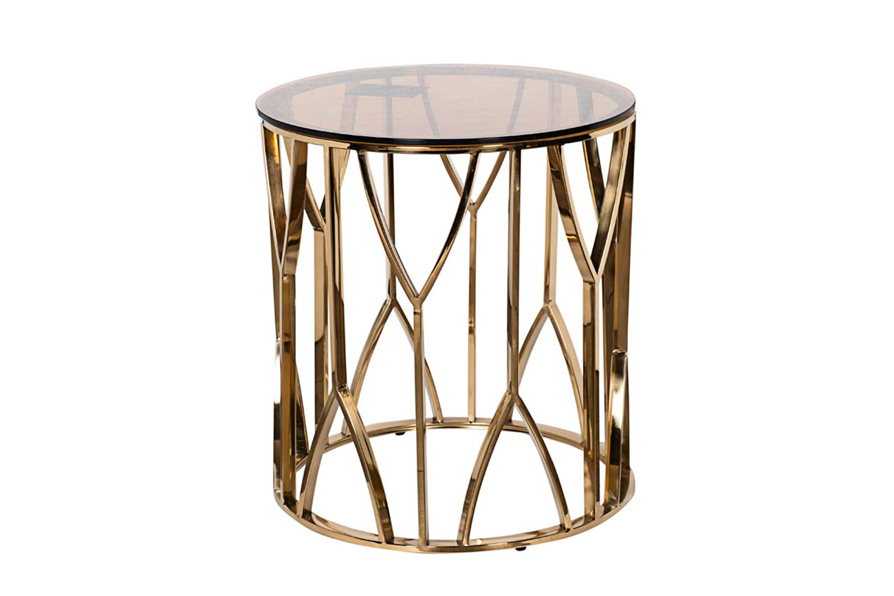 13RXET3103/1-GOLD Стол журнальный стекло коричн./золото d50*55см